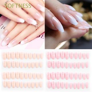 Pink Nude White French Ballerina Coffin False Nails Gradient Natural Manicure Press On Fake Nails Tips Daily Office Finger Wear False Nails Aliexpress