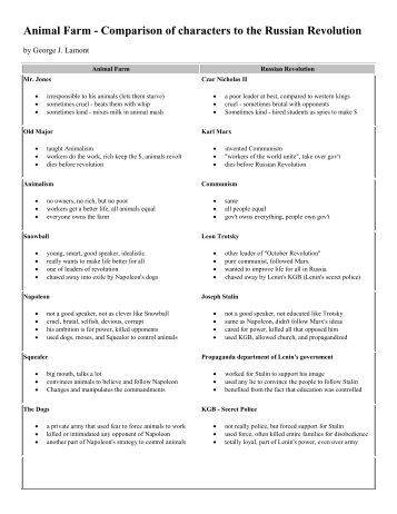 Animal Farm Comparison Of Characters Animal Farm Comparison Of Characters To Russian Revolution Animal Farm Russian Revolution Mr Jones Czar Nicholas Course Hero
