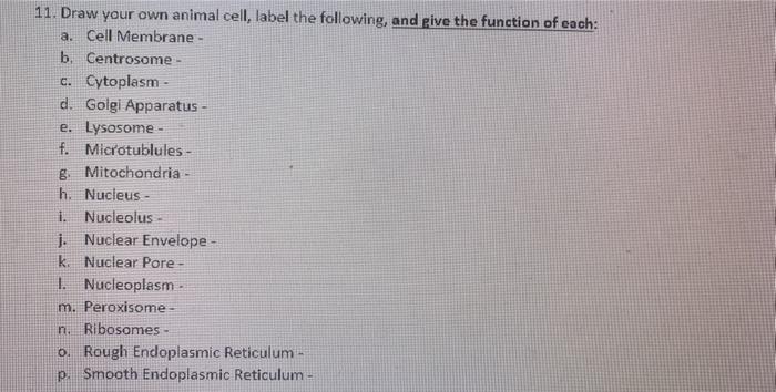Solved 11 Draw Your Own Animal Cell Label The Following Chegg Com