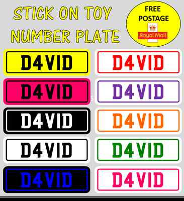 Toy Car Novelty Childrens Number Plate Sticker Personalised Free Postage X1 Ebay